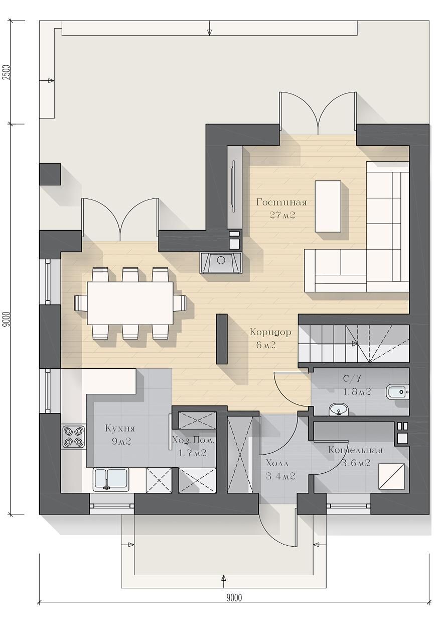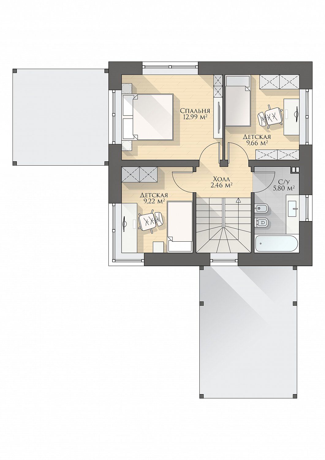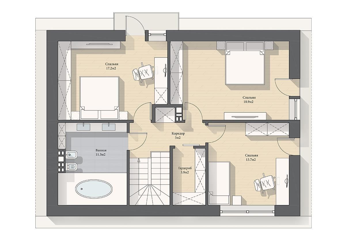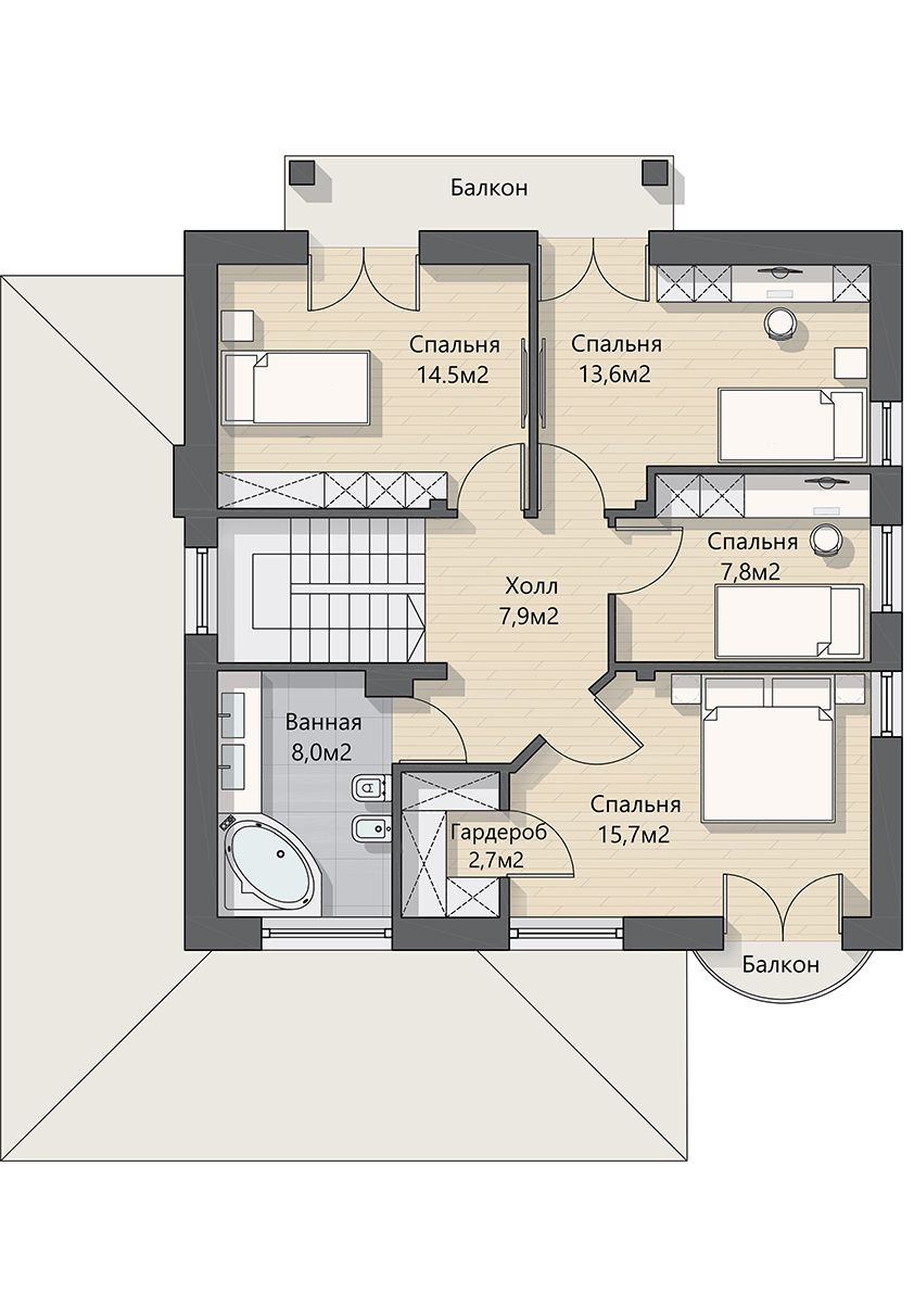 | Габариты | 7,2 м 8,9 м | Площадь дома, м² | 112 |